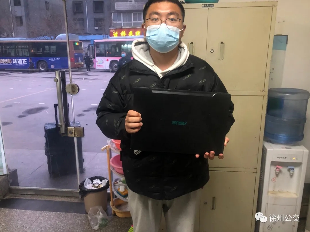 此時(shí),專1路1696號(hào)車到達(dá)徐州站,駕駛員王強(qiáng)開始打掃車輛衛(wèi)生、對(duì)車廂進(jìn)行通風(fēng)、消毒,忽然,他發(fā)現(xiàn)車廂后座位上有一個(gè)藍(lán)色雙肩背包,打開發(fā)現(xiàn)里面有一臺(tái)筆記本電腦。王強(qiáng)隨即撥打車隊(duì)電話報(bào)備,并把背包轉(zhuǎn)交給終點(diǎn)站工作人員登記保管。工作人員在包里找到了失主的聯(lián)系方式,很快聯(lián)系到失主陳先生。