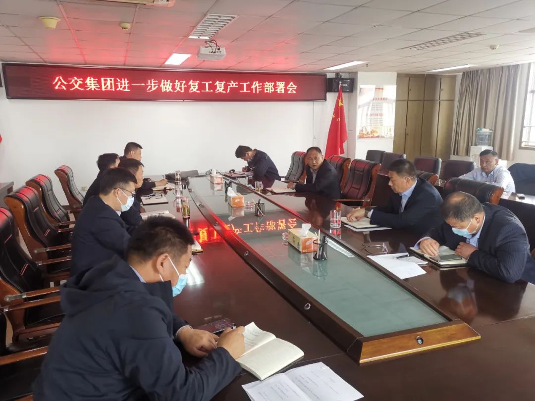 為做好市區(qū)公交線路進(jìn)一步恢復(fù)運(yùn)營的相關(guān)工作,4月28日上午,徐州公交集團(tuán)組織召開關(guān)于進(jìn)一步做好復(fù)工復(fù)產(chǎn)工作部署會(huì),集團(tuán)領(lǐng)導(dǎo)、相關(guān)部室負(fù)責(zé)人參加會(huì)議。黨委委員、總經(jīng)理馮陸陸主持會(huì)議。