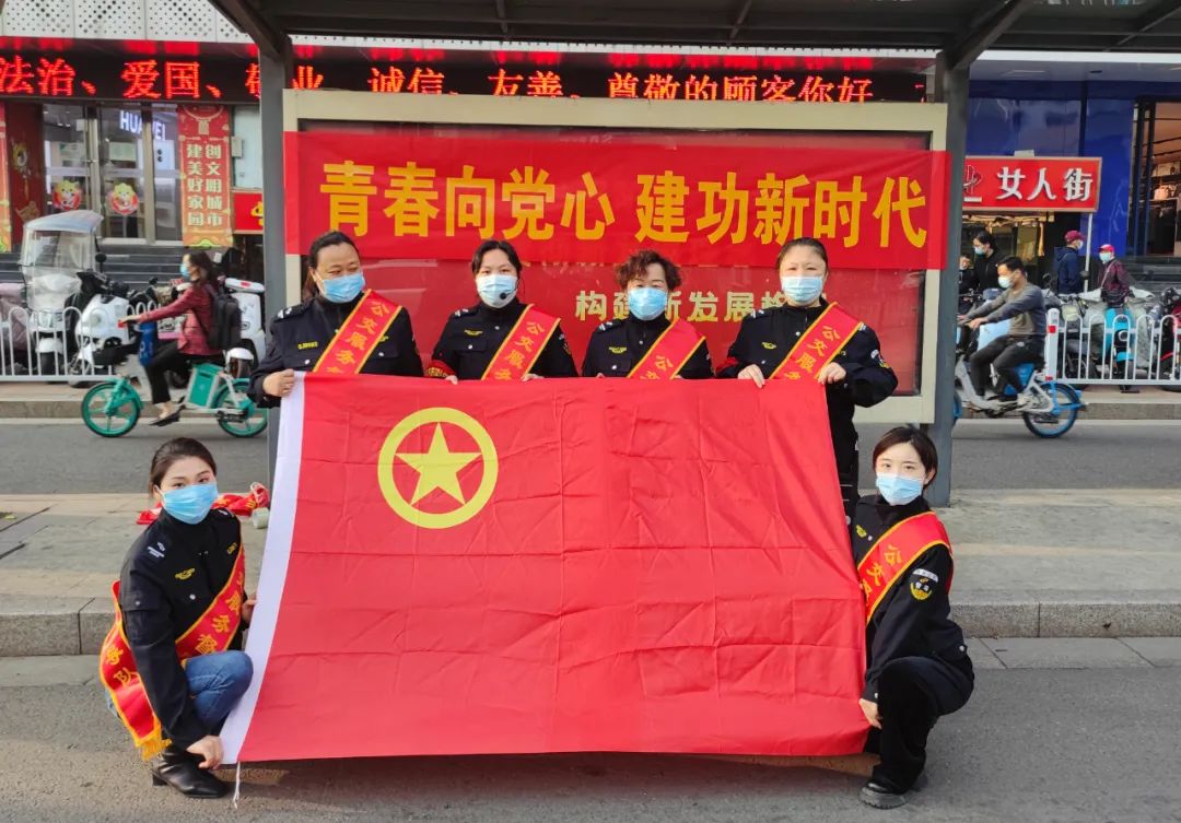在建團(tuán)100周年之際,服務(wù)督導(dǎo)隊(duì)黨支部組織黨員、青年團(tuán)員以黨帶群團(tuán)方式,走進(jìn)公交站臺開展“青年心向黨 建功新時(shí)代”志愿服務(wù)活動。