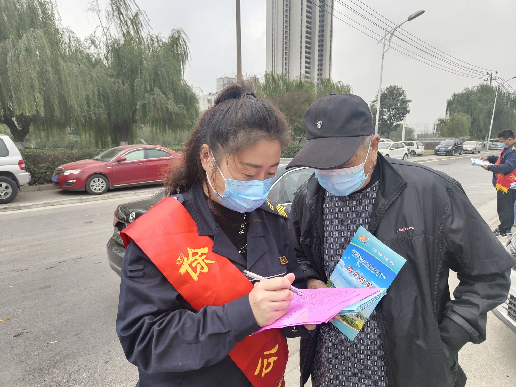志愿者身穿干凈整潔的行業(yè)服,佩戴紅綬帶,在西苑車場(chǎng)宣傳文明乘車出行,引導(dǎo)市民有序乘車、文明讓座、綠色出行,讓市民了解選擇公共綠色交通工具出行的重要性,并協(xié)助乘客使用雙碼乘車,鼓勵(lì)更多市民參與到公交出行周的活動(dòng)中去。
