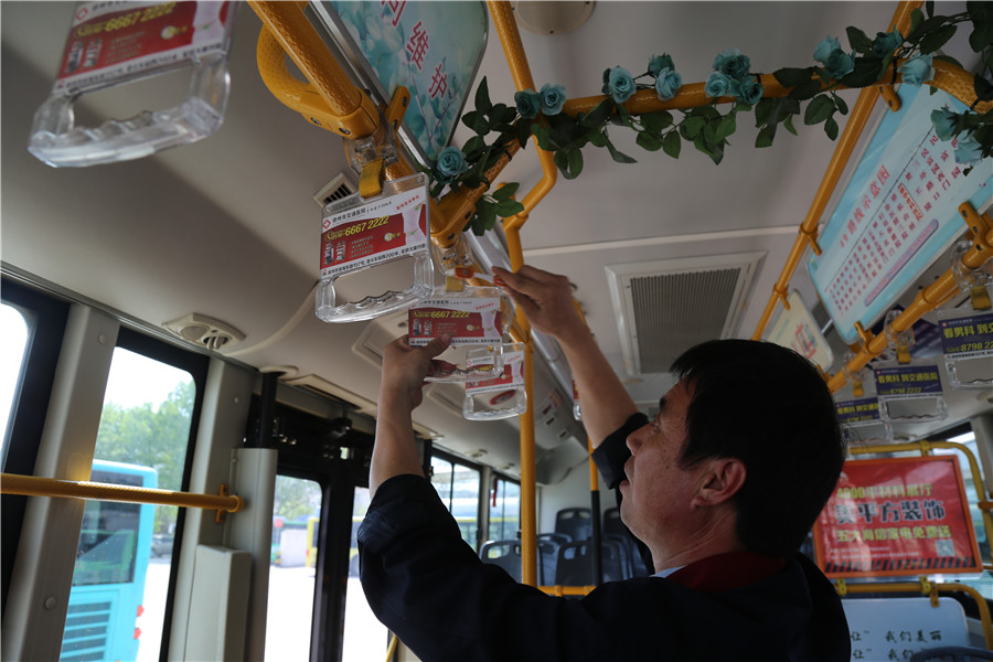 4月19日下午3點(diǎn)多,“嚓、嚓、嚓,嚓、嚓、嚓!”筆者在韓山停車場偶然間發(fā)現(xiàn)一輛49路車上一個忙碌的身影,正在拿著黃色牙刷在刷扶手。走上車,哦,原來是市勞模、49路四星級駕駛員王博正在利用休停時間用牙膏刷洗拉手,別說,這個小竅門還真不錯!經(jīng)過王師傅的辛勤刷洗,原本發(fā)黑的黃色拉手布煥然一新!配詩一首: